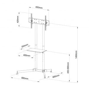Pozostałe parametry: - Regulacja wysokości uchwytu: Tak- Regulacja nachylenia uchwytu: Tak, +/- 15 stopni- Maksymalne obciążenie górnej półki: 5kg- System ukrywania kabli: Tak- Sposób lakierowania: Proszkowo- Kółka ułatwiające przemieszczanie: Tak- Możliwość ustawienia kilku poziomów wysokości telewizora oraz pólki. System ukrywania kabli - przewody chowane w rurze- Stolik na kołach z możliwością ich blokowania