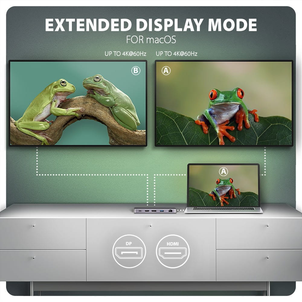 Wieloportowy hub USB-C 10Gbps hub AXAGON HMC-12GM2 GEN2COMBO 12in1 rozszerza funkcjonalność laptopa, komputera lub telefonu o jedenaście portów i zewnętrzną obudowę na dysk M.2. Możesz łatwo i szybko podłączyć do komputera aż dwa monitory, cztery urządzenia USB, sieć Gigabit Ethernet, słuchawki i czytnik kart SD i dysk SSD NVMe lub SATA M.2 jednocześnie za pomocą dwustronnego złącza USB-C. Możesz także zasilić laptopa dzięki technologii Power Delivery. Hub USB-C zapewni prostą i kompaktową stację dokującą 12w1 dla notebooków takich jak Apple MacBook Air lub Pro.