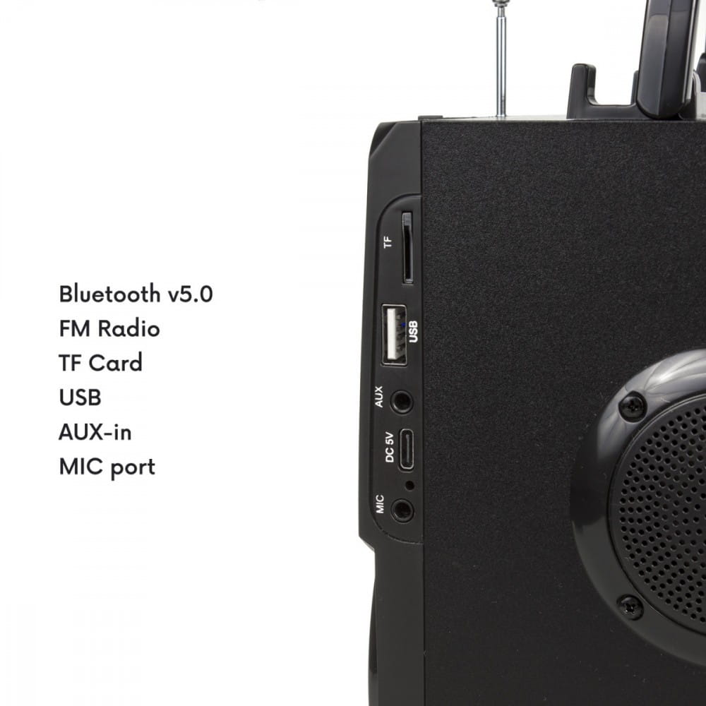 Idealny towarzysz do zabrania ze sobą: Praktyczny uchwyt umożliwia łatwy transport. Dzięki niewielkim rozmiarom głośnik nadaje się do użytku w domu i na zewnątrz. Zasilanie bateryjne - akumulator 2000 mAh: Wbudowany akumulator 2000 mAh gwarantuje 3-4 godziny użytkowania. Urządzenie można łatwo ładować dzięki kablowi USB (5V, 1A).