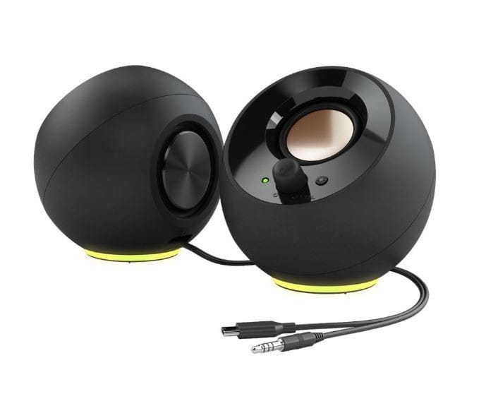 Przy wysokości zaledwie 116 mm Creative Pebble SE jest zbudowany tak, aby pasował do każdego pokoju, dodając estetyczny wygląd bez zajmowania dużej przestrzeni. W komplecie z wygodnym pokrętłem głośności do szybkiego sterowania.