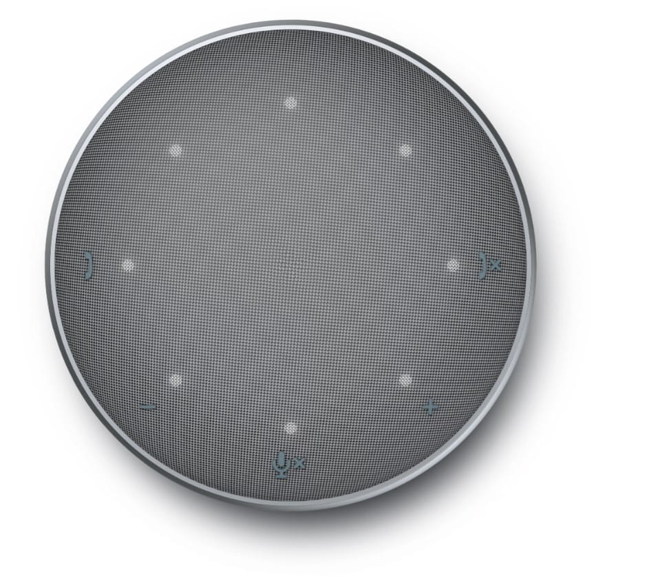- Sterowanie spotkaniem: Możesz łatwo odbierać lub kończyć połączenia, wyciszać lub wyłączać wyciszenie, a także sterować głośnością konferencji za pomocą wbudowanych przycisków zestawu głośnomówiącego ze wskaźnikami LED.