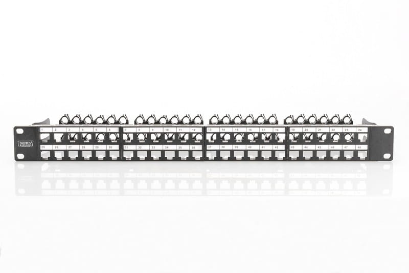 Digitus Modułowy panel krosowy (patch panel) o dużej gęstości połączeń, 19" 48x keystone, ekranowany, 1U, Czarny