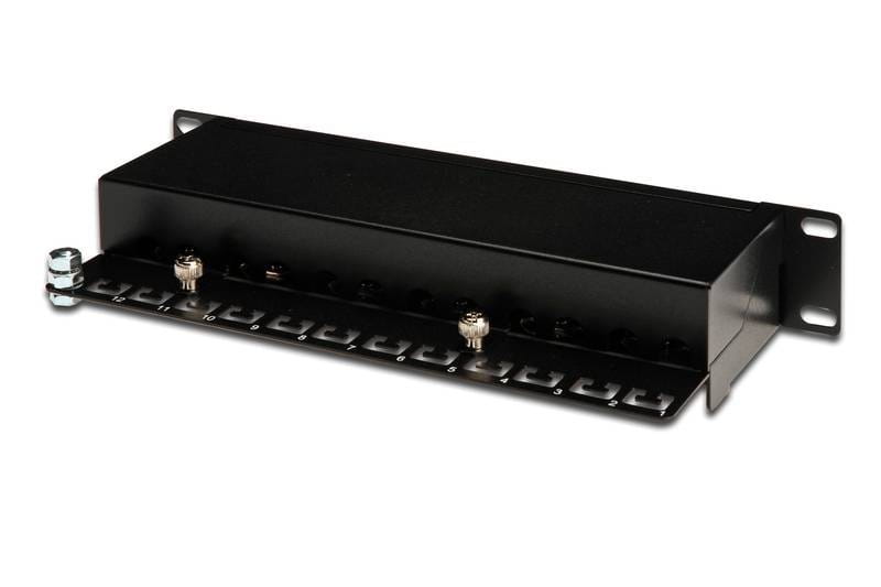 Patch-panel 12-portowy przeznaczony do montażu w szafach rack 10" (254 mm) firmy DIGITUS