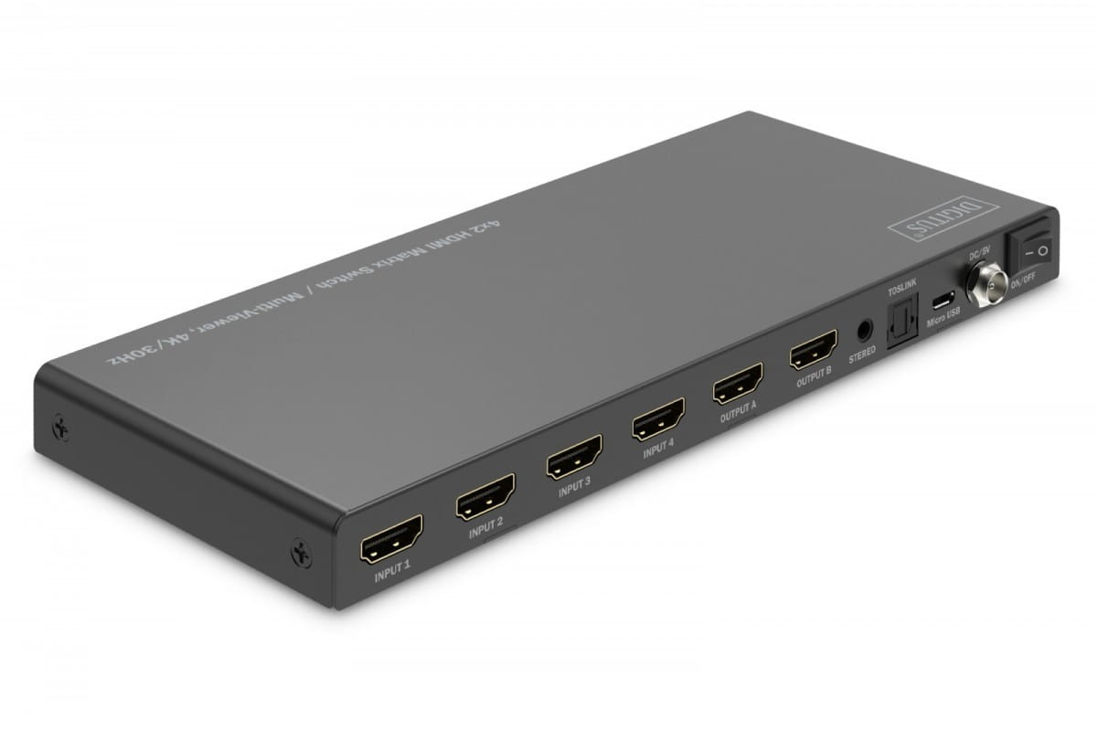 Digitus Przełącznik/Matrix HDMI 4/2-porty 4K/30Hz UHD HDCP 1.4 audio z pilotem