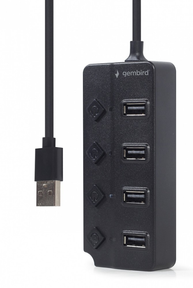 Gembird HUB 4-portowy USB 2.0 z przełącznikami, czarny