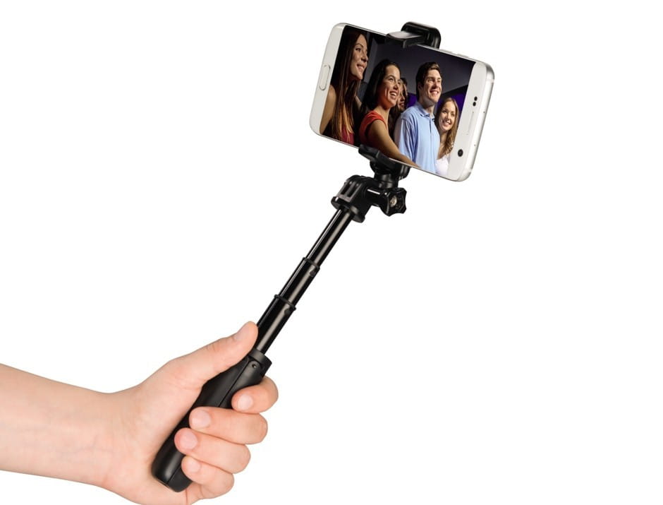 Z tyłu uchwytu Hama umieszczono specjalne lusterko. Jeśli podczas robienia selfie korzystasz czasem z tylnej kamery smartfona (bo, np. ma lepszą jakość) to nie będziesz robić zdjęć na ślepo lusterko pokaże Ci, czy wszyscy zmieścili się w kadrze lub, czy ta pozycja jest dla Ciebie korzystna.