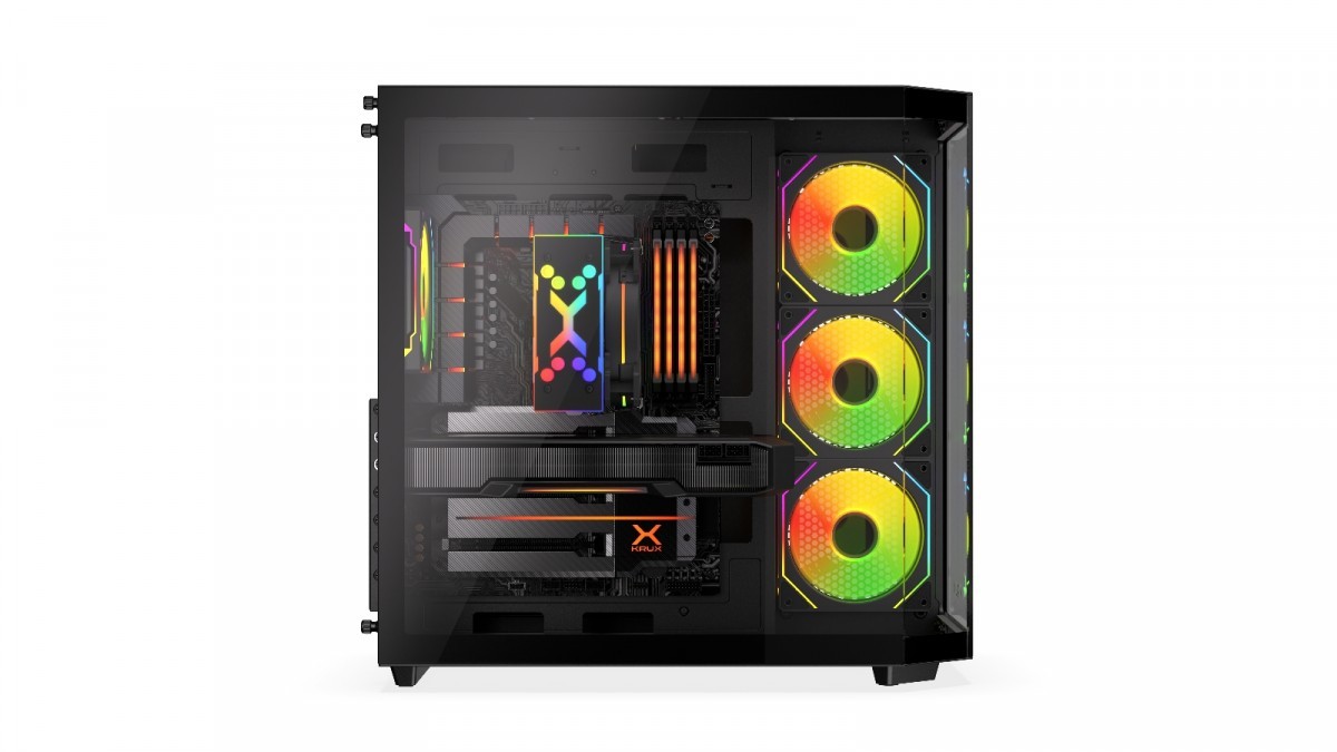 Z obudową Krux Empero dostajesz nie tylko klasyczny boczny panel ze szkła, ale nawet cały przeszklony front. To efekt porównywalny do widoków futurystycznych technologii znanych z filmów sci-fi. Podzespoły będą idealnie widoczne, co świetnie współgra z podświetlanymi elementami. Panele z hartowanego szkła (bok, front i narożny) możesz zdjąć w prosty sposób bez użycia narzędzi są zamontowane na zatrzaski.