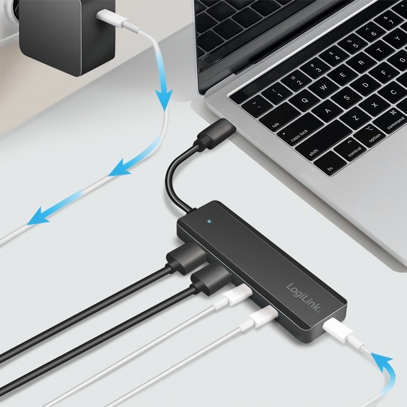 LogiLink Hub USB-C, 4-porty 2x USB-A,2xUSB-C, czarny