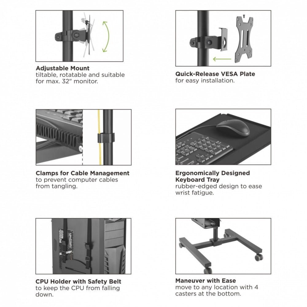 Profesjonalny stand wózek mobilne stanowisko komputerowe na kółkach Maclean MC-793 max 20kg max 17"-32"