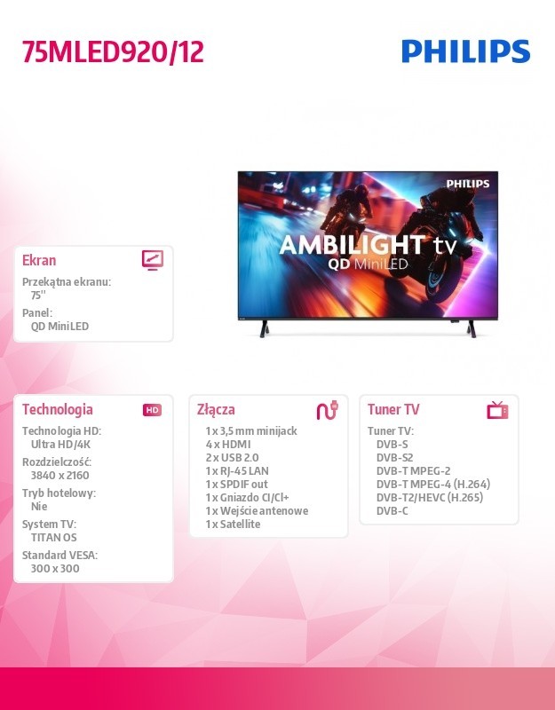 Philips Telewizor QD MiniLED 75 cali 75MLED920/12