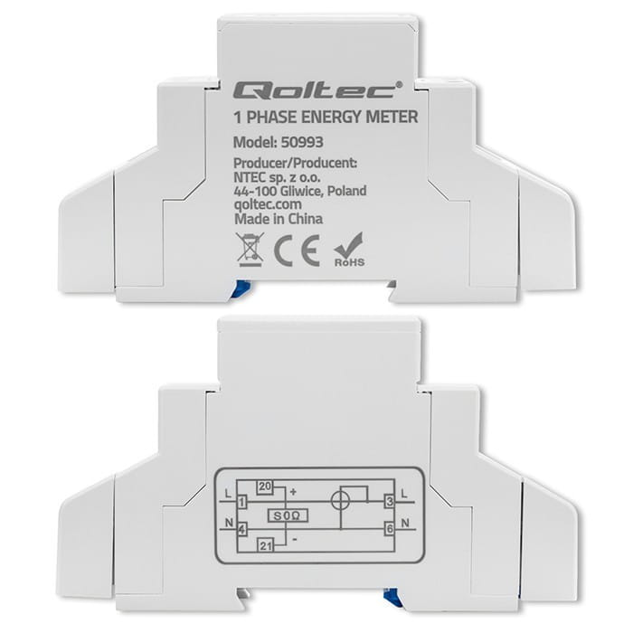 Qoltec Jednofazowy elektroniczny licznik | miernik zużycia energii na szynę DIN | 230V | 30A | LCD | 1P