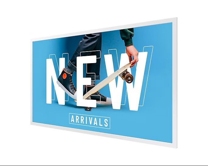 Wyświetlacz z serii EMDX wyróżnia się smukłym i estetycznym designem. Jego ultracienka konstrukcja, o grubości zaledwie 17,9 mm, dodaje prestiżu i nowoczesności, elegancko podkreślając różne przestrzenie biznesowe.