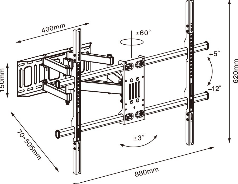 Pozostałe parametry: Regulacja w pionie: +5°~-12° Regulacja poziomu ekranu: +3°~-3°