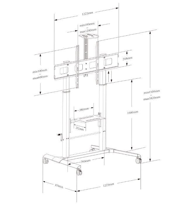 Wymiary: Szerokość: 1225 mm Głębokość: 870 mm Wysokość: 1550 - 1820 mm