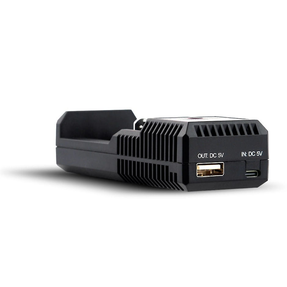 Nieprzeciętne możliwości uzupełnia gniazdo USB działające jako Power Bank o parametrach wyjściowych 5V DC/1000 mA (1500 mA max) - wystarczy dowolny akumulator litowy Li-ion (zalecamy dobrej jakości akumulatory 18650/20700/21700) aby zmienić ładowarkę w funkcjonalny i poręczny przenośny Power Bank.